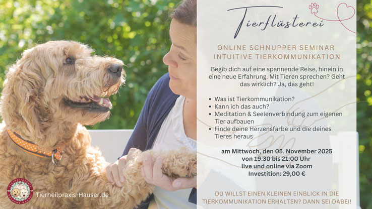 Ziel ist es, ein Bewusstsein dafür zu vermitteln, auf welche Weise uns Mitteilungen von anderen Lebewesen erreichen. Und eine ganz besondere Seelenverbindung zwischen dir und deinem Tier aufzubauen